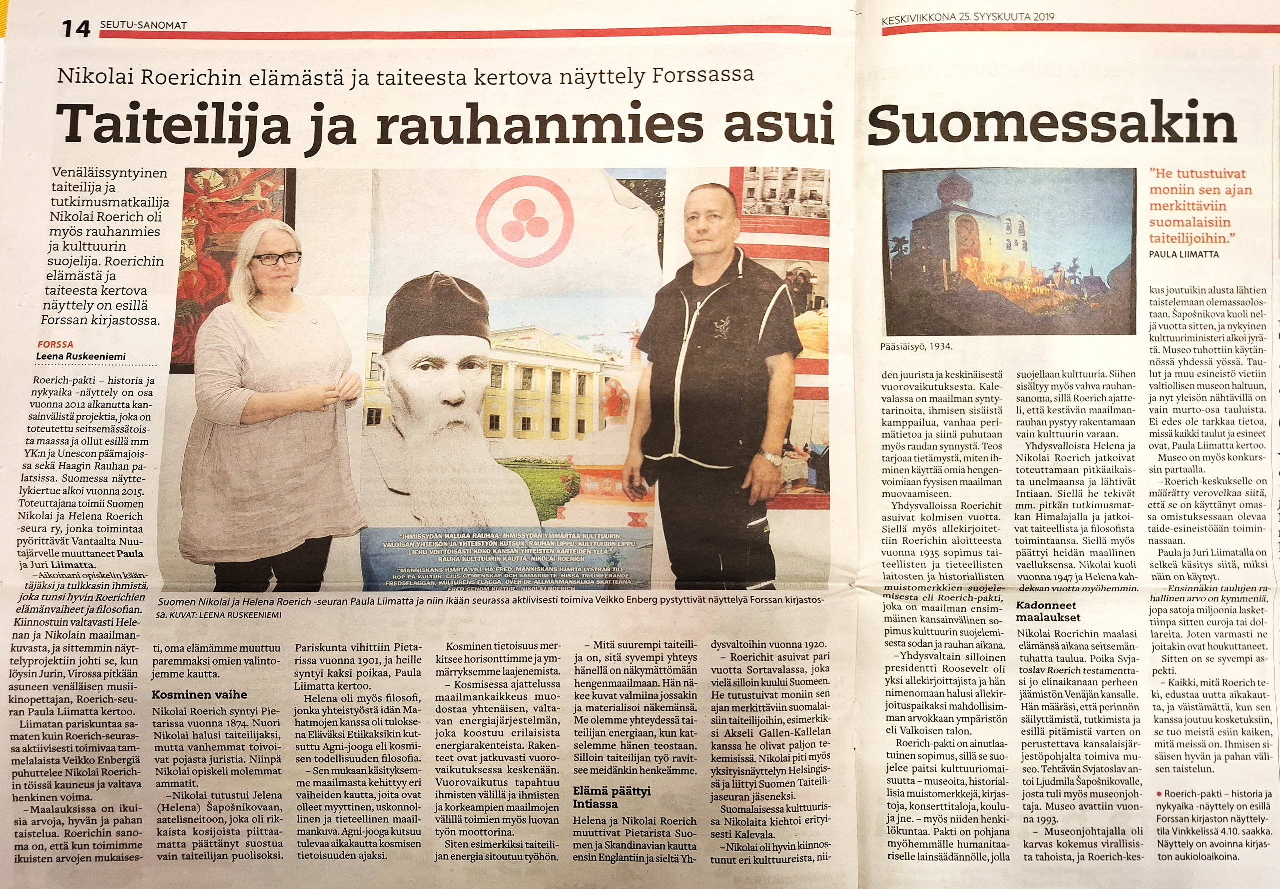 Kuten Ahola-Valo, Roerich (1874─1947) oli paljon muutakin kuin taidemaalari: hän oli arkeologi, tutkimusmatkailija, kirjailija, filosofi ─ ja ennen kaikkea suuri humanisti, rauhanmies. Roerichit tutustuivat moniin aikansa merkittäviin suomalaisiin taiteilijoihin, esimerkiksi Akseli Gallen-Kallelaan. Suomalaisessa kulttuurissa Nikolaita kiehtoi erityisesti Kalevala. ”Kalevalassa on maailman syntytarinoita, ihmisen sisäistä kamppailua, vanhaa perimätietoa. Teos tarjoaa tietämystä, miten ihminen käyttää omia hengenvoimiaan fyysisen maailman muovaamiseen.”